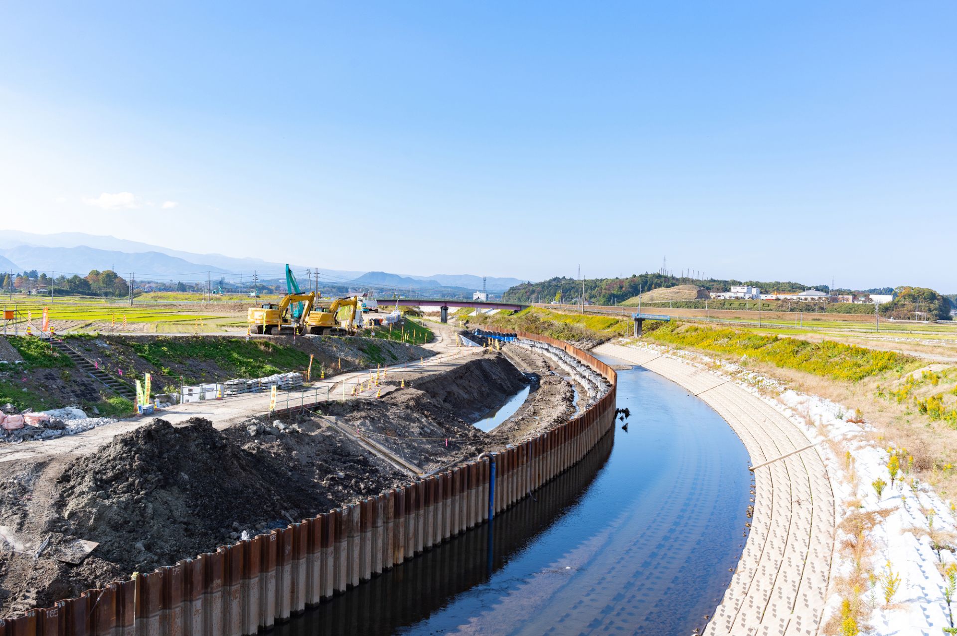 河川工事、道路整備、大規模な宅地造成、基盤整備。確かな施工管理と図面への忠実な対応で、地域のインフラを支えます。
