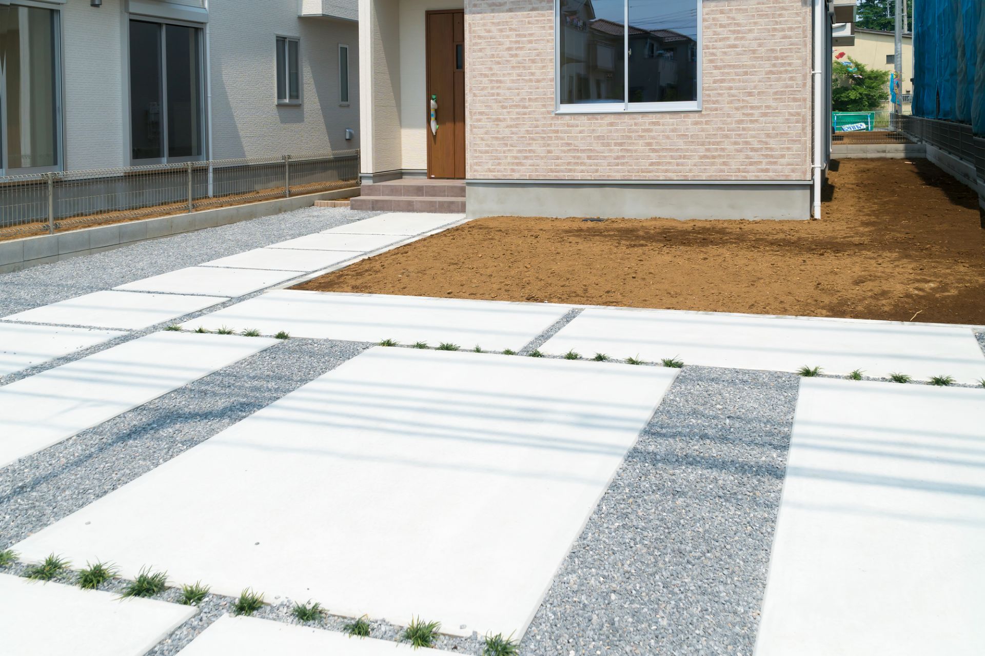 玄関周りのアプローチ、駐車場舗装、フェンス、石積み。お客様のライフスタイルに合わせた「住まいの顔」を形にします。